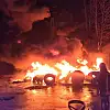 İş yeri önündeki lastikler ve hafif ticari araç yandı
