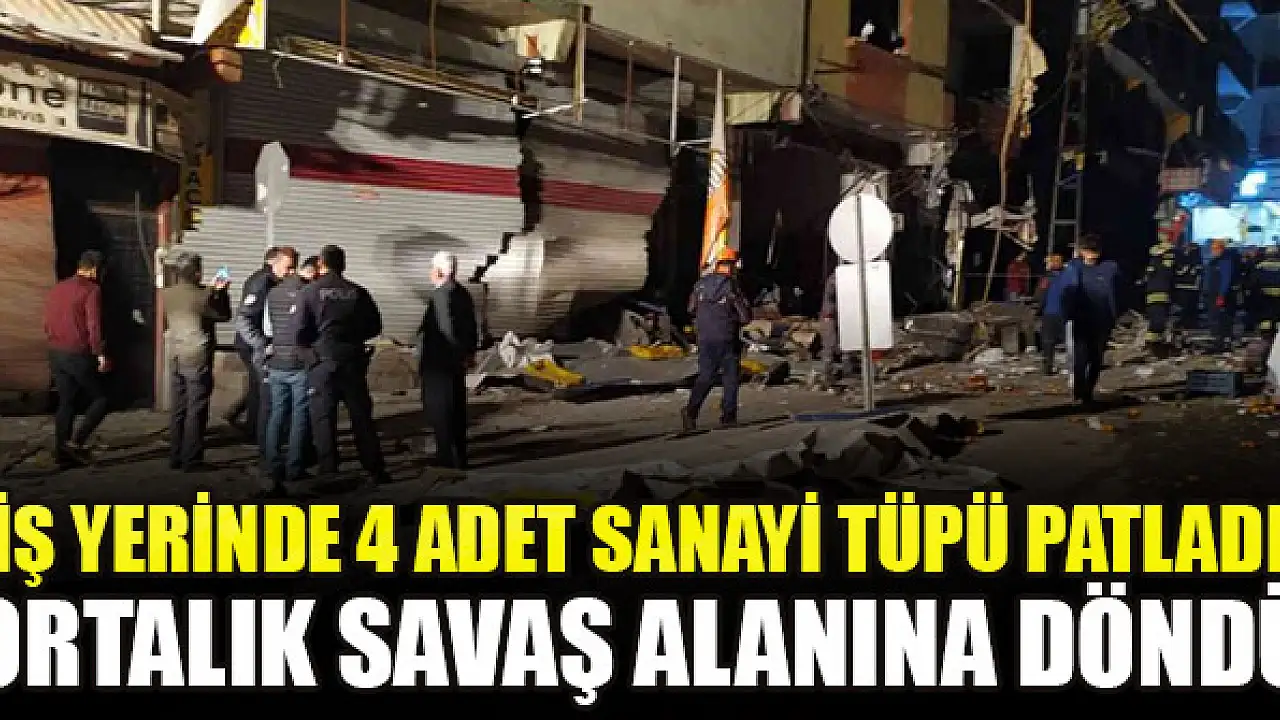 Gaziantep'te bir iş yerinde 4 adet sanayi tipi tüpün patlaması sonucu ortalık savaş alanına döndü. Şans eseri ölenin olmadığı olay sonrası iki vatandaş hafif yaralandı.