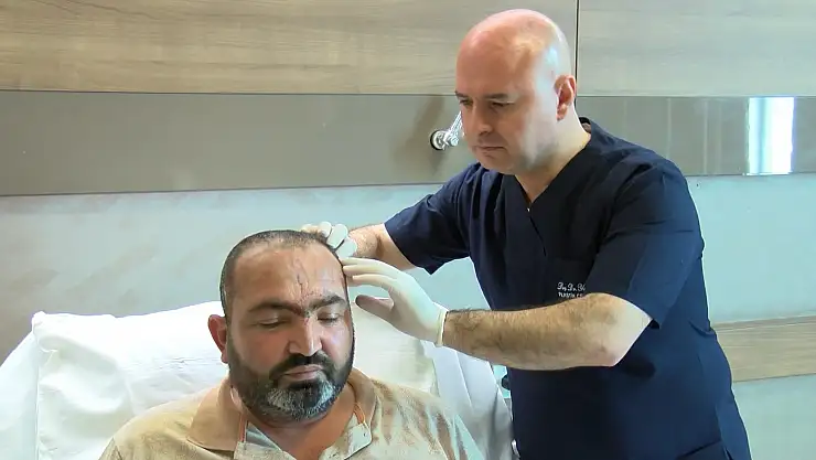 Hidrolik makine teknikeri olan 44 yaşındaki Cevat Çelebi'nin alın kemiği, iş yerinde hızlı bir şekilde çarpan halat zincirle parçalandı. Ağır darbe aldığı için Çelebi'nin yüzde 80 ölüm riski olduğunu belirten Rekonstrüktif ve Estetik Cerrahi Uzmanı Doç. Dr. Yakup Çil, buna rağmen hayata tutunduğunu ve gerçekleştirdikleri zorlu ameliyatın ardından hem sağlık hem de estetik görünüm açısından hiçbir probleminin kalmadığını söyledi.