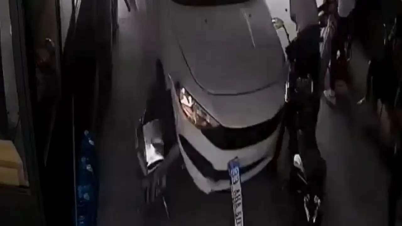 GÜNGÖREN'de bir iş yerine giren otomobil, çay molasındaki 3 kişiye çarptıktan sonra hızla geri çıkarak kaçtı. Kazada 1 kişi yaralanırken o anlar güvenlik kamerasına yansıdı.