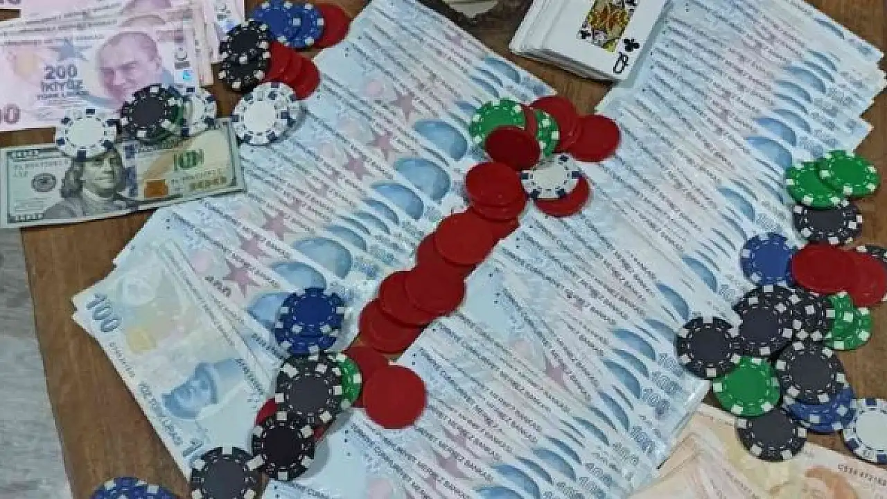 Adreste yapılan aramalarda 1 deste oyun kartı, 82 adet oyun pulu, 10 bin 200 TL ve 200 dolar para ele geçirildi.