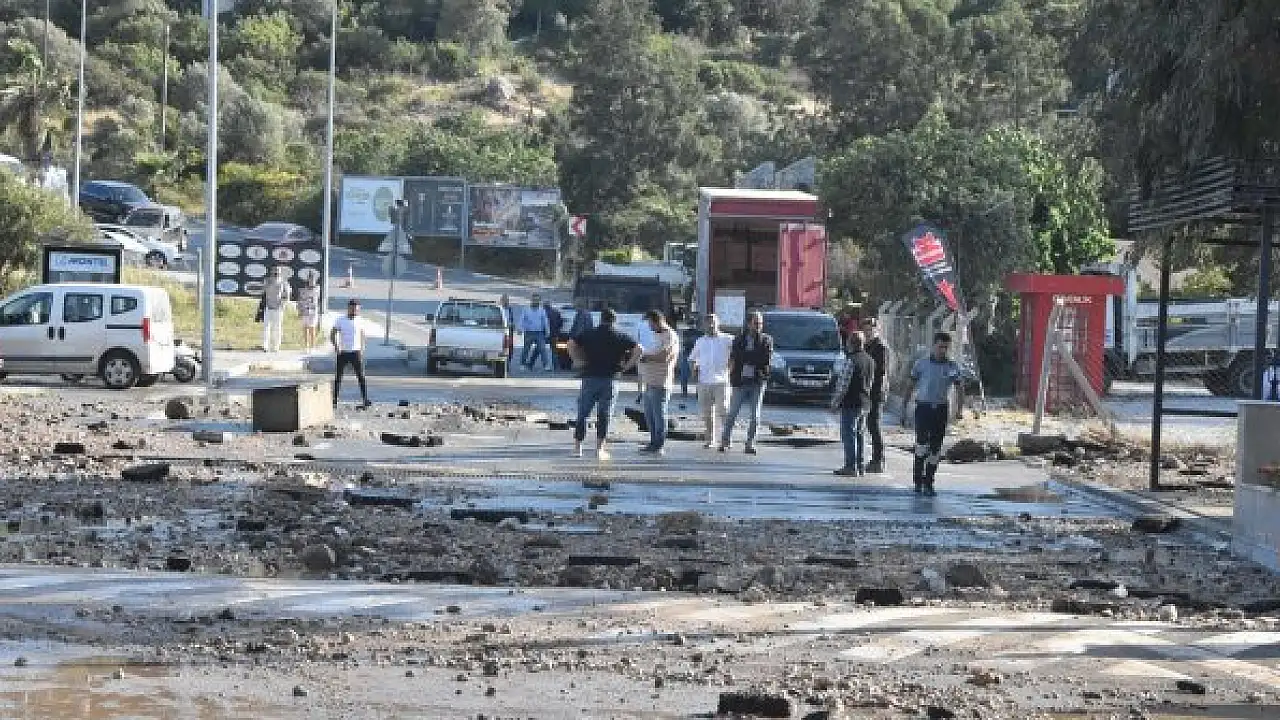 MUĞLA'nın Bodrum ilçesinde ana su isale hattında meydana gelen patlamanın ardından cadde ve sokaklar göle döndü, 4 iş yeri ve bir depo sular altında kaldı.