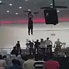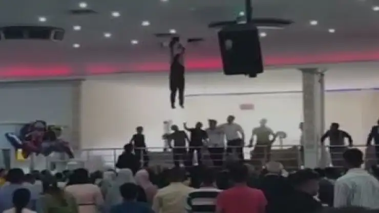 Tekstil atölyesinde çalışan işçi, asma tavanın çökmesiyle alt kattaki düğün salonuna düştü. Bu anlar, davetliler tarafından cep telefonu kamerasıyla görüntülendi.