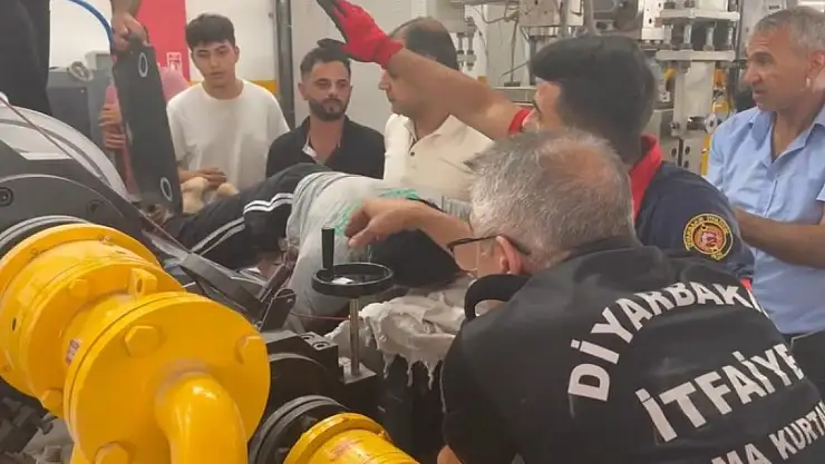 Diyarbakır'da elini levha kesme makinesine kaptıran işçi, itfaiye ve sağlık ekiplerinin müdahalesiyle kurtarıldı.