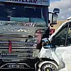 İşçi servis minibüsü, otomobil ve TIR'a çarptı 14 yaralı