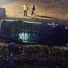 Otoyol şantiyesinde görevli işçileri taşıyan minibüs, yağışlı havada kontrolden çıkarak uçuruma uçtu. Ekiplerin iş makineleri desteğiyle sarp araziden çıkardığı 13 yaralıdan birinin durumunun ağır olduğu öğrenildi.