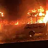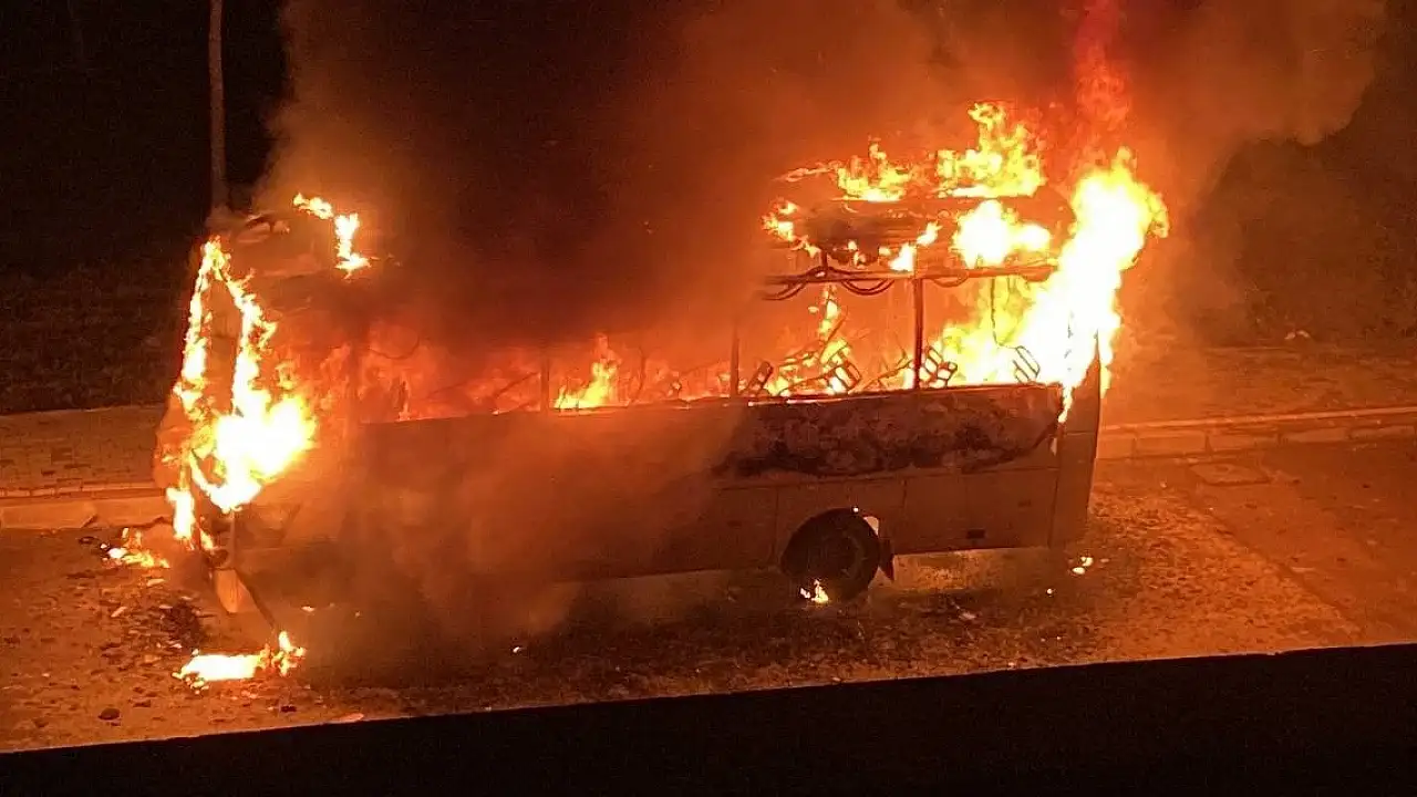 İşçi servisi alev alev yandı, facianın eşiğinden dönüldü