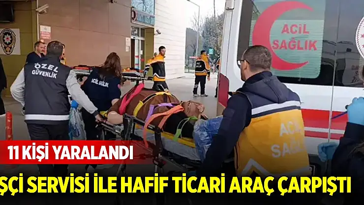 İşçi servisi ile hafif ticari aracın çarpıştığı kazada 11 kişi yaralandı.