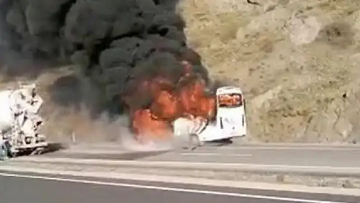 İşçi servisi yandı: 18 işçi son anda kurtuldu
