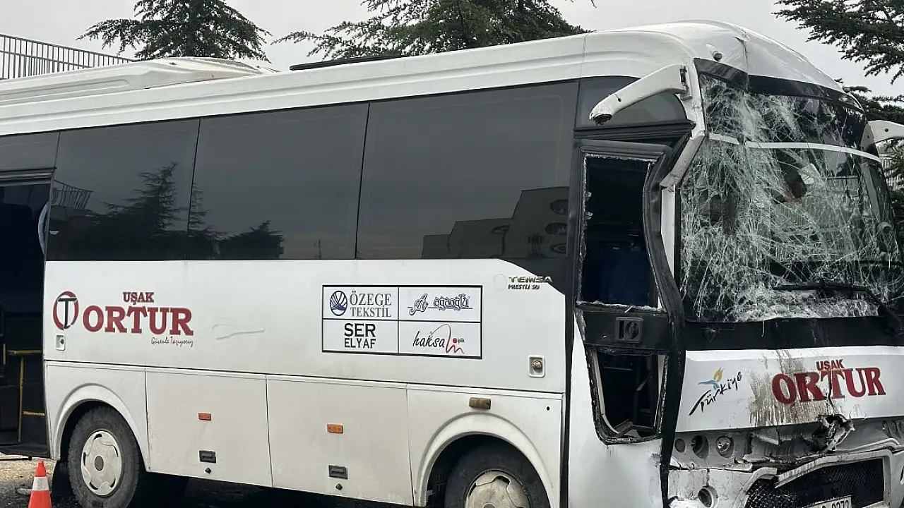 Uşak'ta fabrikaya işçi taşıyan midibüs ile servis otobüsünün çarpıştığı kazada, 20 kişi yaralandı.