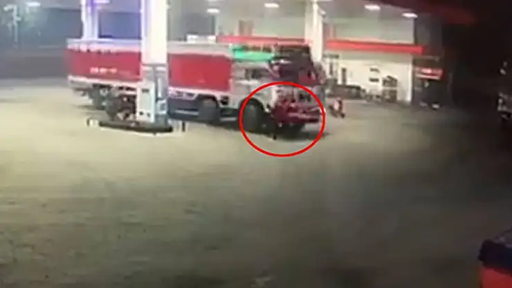 Korkunç kaza Hindistan’da meydana geldi. Bir akaryakıt istasyonunda sohbet eden iki işçiye kamyon çarptı. İşçilerden biri kısa sürede ayağa kalkarken diğeriyse yerde hareketsiz kaldı. Aracından inen şoför yerde yatan şahsı görünce olay yerinden koşarak kaçarken o anlarda güvenlik kamerası da kayıttaydı.