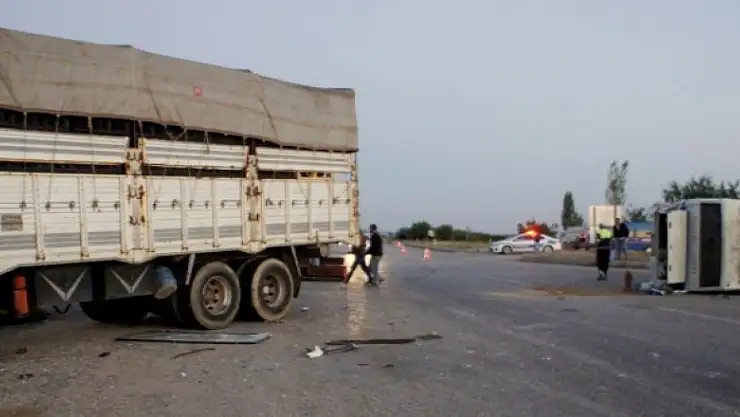 İşçileri taşıyan minibüse kamyon çarptı: 9'u ağır 31 yaralı