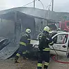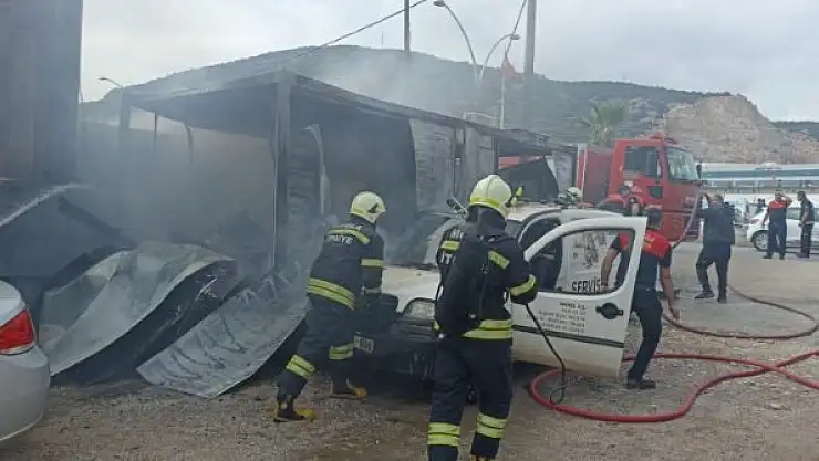 İşçilerin kaldığı konteyner ile park halindeki 2 araç yandı