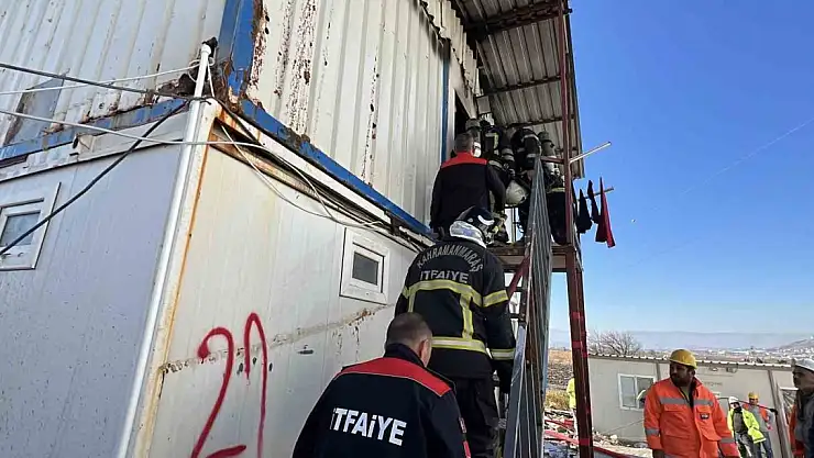Kahramanmaraş'ta 400 yataklı acil durum hastanesinin inşaatında işçilerin kaldığı konteynerde çıkan yangın itfaiye ekipleri tarafından söndürüldü.