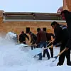 Ağrı'nın Doğubayazıt ilçesinde bulunan tarihi İshak Paşa Sarayı'nın avlusunda biriken karlar, kar püskürtme makinesi ve küreklerle temizlendi.