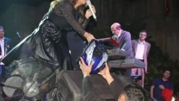 Hatay Büyükşehir Belediyesi'nin Cumhuriyet Bayramı dolayısıyla düzenlediği Cumhuriyet Konseri'nde sahneye çıkan Işın Karaca, hayranlarından birine motor kaskı hediye etti.