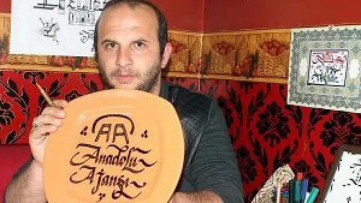 Erzurum'da bir çağrı merkezinde asistanlık yapan Mustafa Adıgüzel, 4 yıl önce çalışmasını izlediği kaligrafi ustasının tepkisi üzerine başladığı bu sanat dalında kendi çabasıyla ustalaşarak ilk kişisel sergisini açtı.