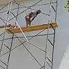 Adıyaman’da 3 katlı bir inşaatın binasında dış cephe boyası yapan işçi namaz ibadetini iskelenin üzerinde yerine getirdi. Binan en üst kısmında boya yaparken, öğle ezanı okununca, işi bırakan işçi iskele üzerinde namazını kıldı.