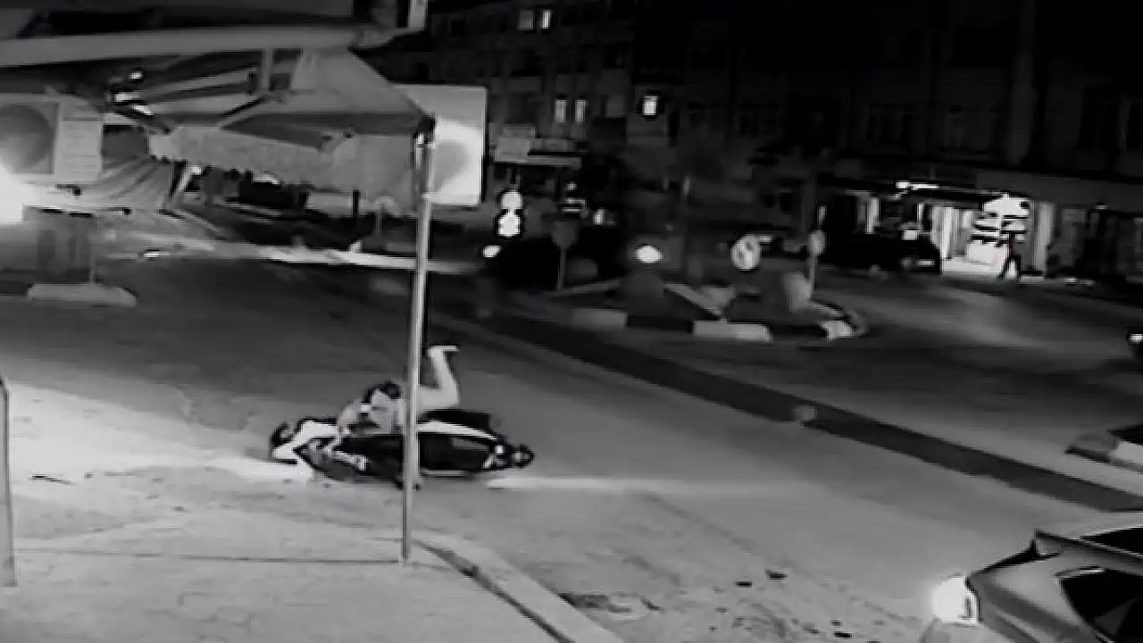 Sakarya'nın Akyazı ilçesinde ıslak yol, otomobilin kontrolden çıkarak refüje çarpmasına ve dönüş yapmak isteyen motosikletin devrilmesine sebep oldu. Meydana gelen kazalar güvenlik kamerası tarafından görüntülendi.