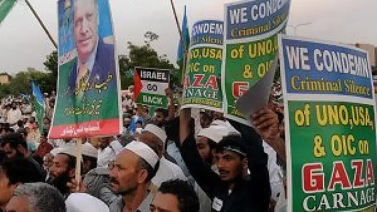 Pakistan'da, İsrail'in Gazze'ye yönelik saldırıları, çok sayıda kişinin katıldığı ''Lebbeyk-e Kible-i Evvel" (İlk Kıblemiz Emrindeyiz) adıyla düzenlenen gösteriyle protesto edildi.