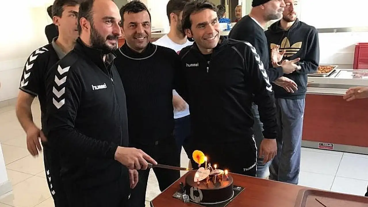 Nazilli Belediyespor maçının hazırlıklarını sürdüren Anadolu Selçukspor'da yardımcı antrenör İsmail Kısa'nın 32. yaş günü kutlandı
