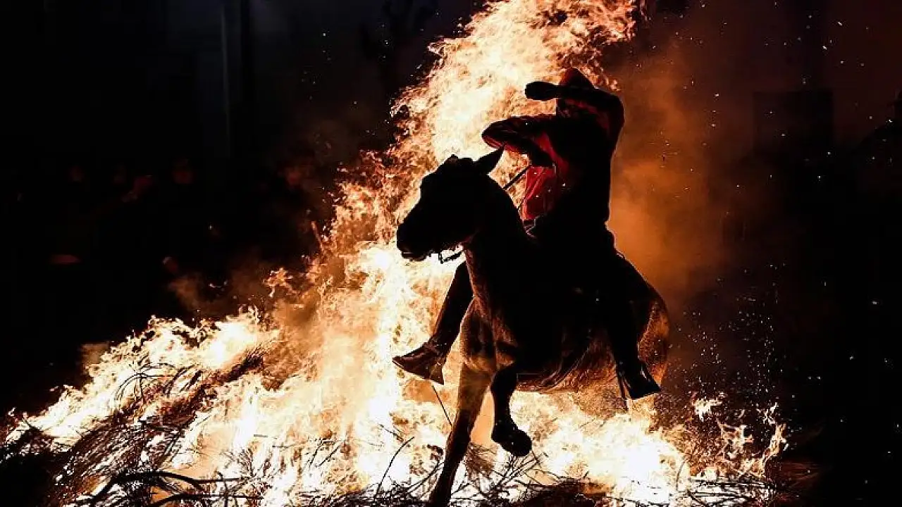 İspanya'nın kuzeyindeki Avila kentinin San Bartolome de Pinares kasabasında yaklaşık 300 yıldır süregelen bir inanışla atlar, kötülüklerden ve günahlardan arınmak için yakılan büyük ateşlerin üstünden atlatıldı.