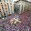 Belediye binasının bulunduğu meydan her yıl olduğu gibi binlerce insanla dolup taştı. Pamplonalıların başını çektiği beyaz giysili ve kırmızı fularlı San Fermin festivalimeraklıları, "Pamplonalılar, bizimle eğlenmek için geldiniz. Yaşasın San Fermin, yaşasın San Fermin" şeklindeki anonstan sonra meydanda büyük bir coşku seli yarattı. Açılış sırasında kırmızı fularları ellerinde sallayan Pamplonalılar, fişek ateşlendikten sonra fularları boyunlarına taktı.