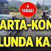 Edinilen bilgiye göre, Mustafa E. yönetimindeki 32 SE 006 plakalı otomobil ile Ramazan Ç. idaresindeki 42 DS 316 plakalı başka bir otomobil kavşakta çarpıştı. Çarpışmanın etkisiyle Mustafa E. ve aynı araçta yolcu konumunda bulunan Ramazan C. ile diğer aracın sürücüsü Ramazan Ç. ve yolcu Eşe Ç. yaralandı.