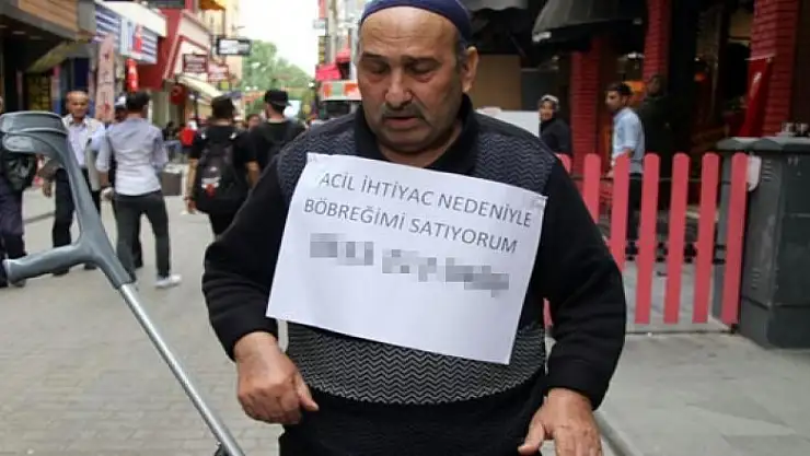 Kafeler Caddesi’nde vatandaşların şaşkın bakışları arasında üzerine astığı ve "Acil ihtiyaç nedeniyle böbreğimi satıyorum" yazısıyla dolaşan Demir, "İhtiyacım var, 9 bin 900 lira. Ev kiram, engelli arabam ve oksijen makinesi istiyorum. Başka bir şey istemiyorum. Gelirim yok, hiçbir şeyim yok" dedi.