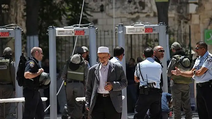 İsrail'in 'Mescid-i Aksa'nın kapılarına kurduğu metal arama dedektörlerini kaldırarak yerine el dedektörleri kullanma kararı aldığı' iddia edildi.