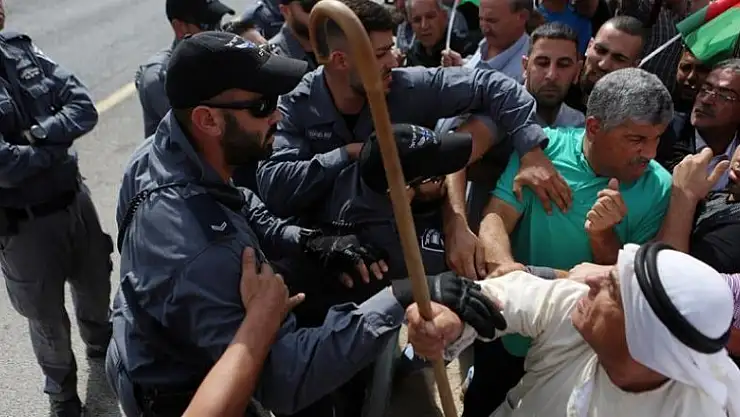 İsrail güçleri, işgal altındaki Doğu Kudüs kırsalında Filistinli bedevilerin yaşadığı Han el-Ahmer'de İsrail makamlarının yıkım kararına karşı düzenlenen gösteriye müdahale etti.