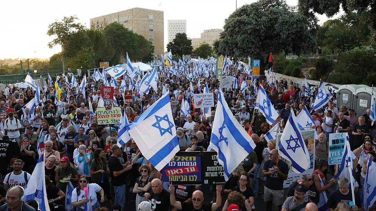 İsrail'de erken seçim ve Gazze Şeridi'ndeki esirlerin geri getirilmesi için hükümete baskılar devam ediyor. İsrail parlamentosu önünde toplanan binlerce kişi, erken seçim çağrısında bulunarak, hükümetten Gazze Şeridi'ndeki esirlerin serbest bırakılması için Hamas'la anlaşmaya varılmasını talep etti. Göstericiler, "Hayır, pervasız bir hükümeti kabul etmeyeceğiz" ve "Faşizme hayır" sloganları attı.