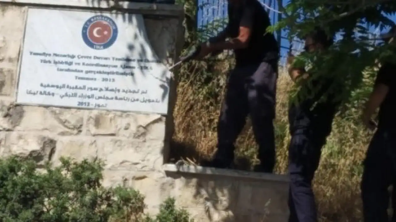 İsrail polisinin bu sabah söktüğü TİKA tabelası 2010'dan bu yana mezarlıkta asılı duruyordu.
