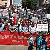Ellerinde Türk ve Filistin bayrakları ile çeşitli pankartlar taşıyan grup, Cumhuriyet Caddesi boyunca Milli Egemenlik Meydanı'na kadar yürüdü. Gruptakiler, tekbir getirerek çeşitli sloganlar attı.