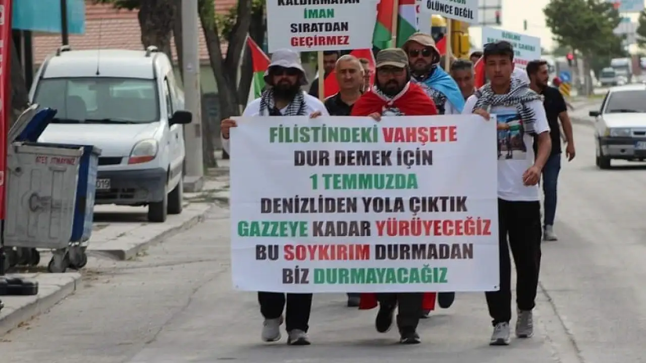 Denizli'den 7 gönüllü İsrail vahşetine dikkat çekmek için Hatay'a kadar yürüyüş yapma kararı aldı. 8 gün önce Denizli Delikliçınar Yeni Cami'den yürüyüşe başlayan, akademisyen, din görevlisi ve üniversite öğrencilerinden oluşan gönüllüler, Konya'nın Karapınar ilçesine ulaştı. Gazze Yürüyüş Platformu gönüllüsü grubu Karapınar'da vatandaşlar karşıladı. 20 Temmuz'da Hatay'a ulaşmayı planlayan Gazze Yürüyüş Platformu Gönüllüsü Doç. Dr. Mustafa Türkan, "Hatay'a gönüllü arkadaşlarla yürüyeceğiz. Gazze'de olan bitene sessiz kalmak Müslümana yakışmaz. Denizli'den hedefimiz Gazze olması için dua edip yola çıktık, Karapınar'a ulaştık. İnsanlığın onuru izzeti şerefi ve başta doğu Türkistan, Gazze olmak üzere yapılan zulme karşı sesimizi duyurmak için yola çıktık. Gittiğimiz her yerde bize büyük destek var. Bütün dünyanın seyrettiği zulme dur demek için çocukların masum insanların sesi olmak için, İslam ülkelerinin dirilişine vesile olmak için bu yola baş koyduk" dedi.