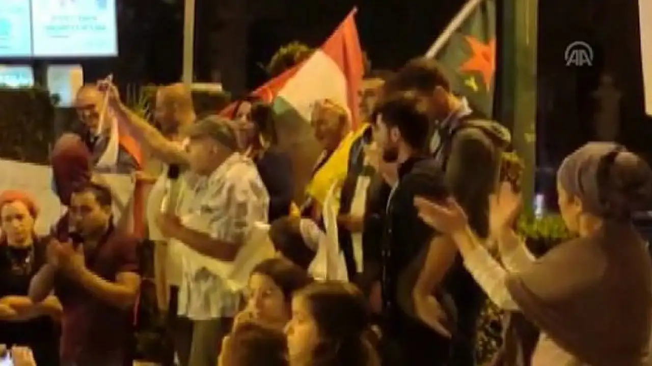 YPG ve İsrail bayrağı taşıyan grup üyeleri, terör örgütüne desteğin yanı sıra Cumhurbaşkanı Recep Tayyip Erdoğan'ı hedef alan sloganlar attı.