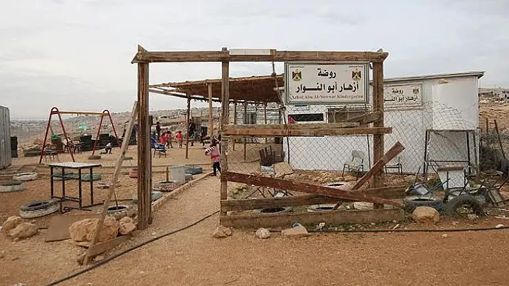 Kudüs kırsalında yer alan bedevi Arap topluluğu Ebu Nuvvar'daki öğrenciler, İsrail yönetiminin okulları için aldığı yıkım kararı nedeniyle eğitimlerini misafirhanede sürdürüyor.