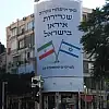 İsrail'in başkenti Tel Aviv'in ünlü meydanlarından Rabin'de bir bina üzerine asılan "İran Büyükelçiliği" afişi İsrail'de paniğe neden oldu.