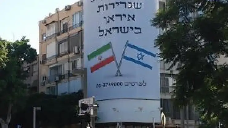 İsrail'in başkenti Tel Aviv'de bir bina üzerine asılan afiş ortalığı karıştırdı. Afişte İran ve İsrail bayrağı yer alırken, İbranice 'İran Büyükelçiliği yakında hizmetinizde' ifadeleri yer aldı. Afişi kimin astığı belirsiz, üstündeki iletişim numarası ara