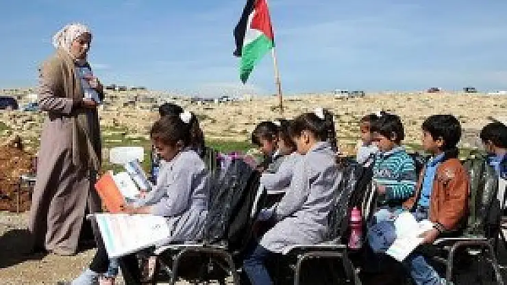 Fransa hükümetinin desteğiyle geçen sene inşa edilen "Ebu Nevvar" bölgedeki tek okul olmasına rağmen İsrail askerleri tarafından buldozerlerle yıkıldı, ancak İsrail'in okulsuz bıraktığı öğrenciler, eğitimden vazgeçmedi. Soğuk havaya aldırmaksızın, açık alana kurulan dersliği dolduran öğrenciler, ders görmeye devam ediyor.