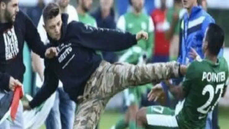 Öte yandan sahaya giren taraftarlardan birinin elinde Türk bayrağı olması da dikkat çekti.