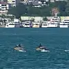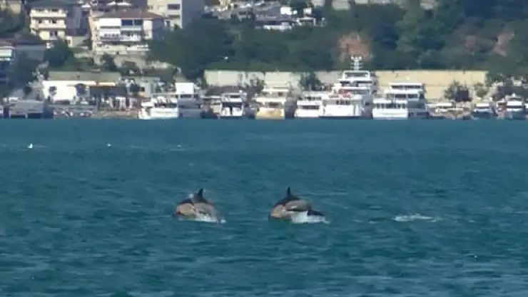 Öğleden sonra Emirgan sahilinde, Boğaz'dan geçen yunuslar görüntülendi.