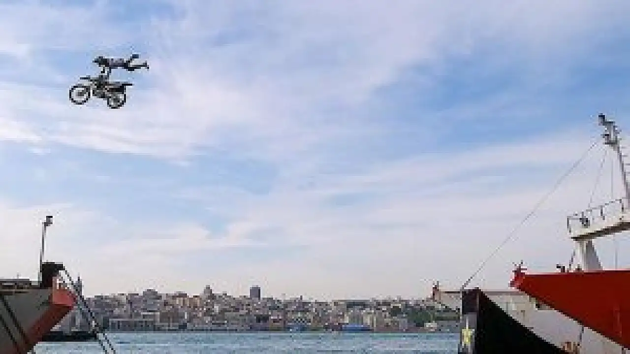 Alman motokros sporcusu Freddy Peters, dünyada bir ilki gerçekleştirerek gemiden gemiye 21 metrelik atlayış yaptı.