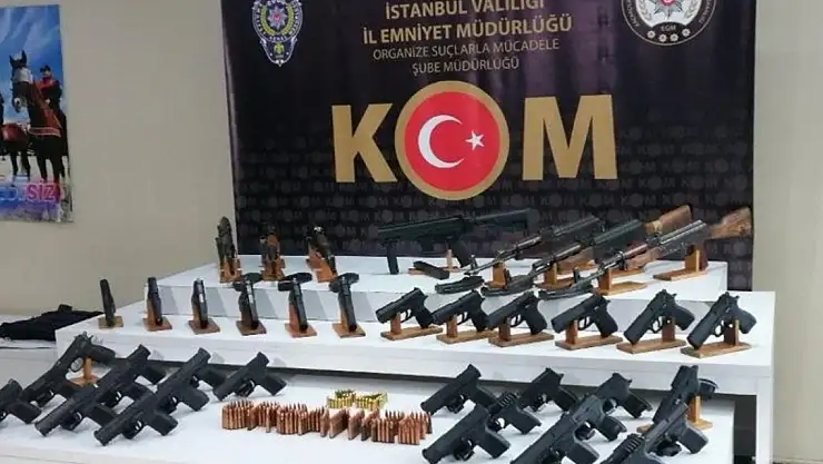 Haklarında gözaltı kararı verilen 87 şüphelinin belirlenen adreslerine 5 Ocak'ta düzenlenen eş zamanlı operasyonlarda ele geçirilen 30 ruhsatsız tabanca, 6 uzun namlulu silah, 1 otomatik tabanca ile 4 çelik yelek, İstanbul Emniyet Müdürlüğünün Vatan Caddesi'ndeki yerleşkesinde sergilendi.