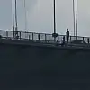 Boğaziçi Köprüsü'nde köprü korkuluklarına çıkarak intihar girişiminde bulunan şahıs nedeniyle trafik kilitlendi.