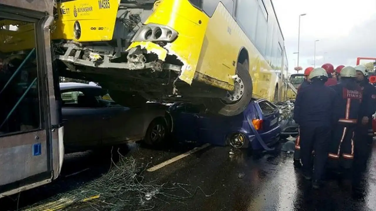 Alınan bilgiye göre, Avrupa Yakası'ndan gelen 34 TP 2406 plakalı metrobüs,Acıbadem durağında yoldan çıkıp, karşı yönden gelen çift katlı otobüsle çarpıştı. Metrobüs, çarptığı araçlardan 4'ünü de altına aldı.
