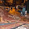 Binaya çarparak yere düşen parçalar nedeniyle sokaktaki çok sayıda araç da hasar gördü. Ekiplerin çatıyı kaldırma çalışmaları sürüyor.