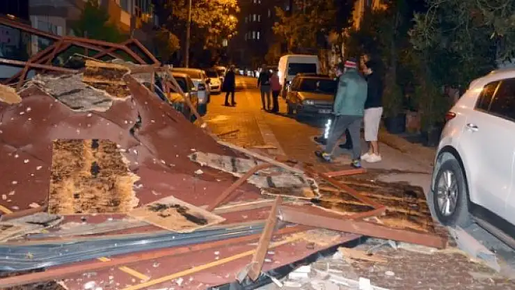 Esenler'de de Nene Hatun Mahallesi'ndeki bir binanın çatısı şiddetli rüzgardan uçarak sokağa düştü. Burada da iki otomobil hasar gördü.