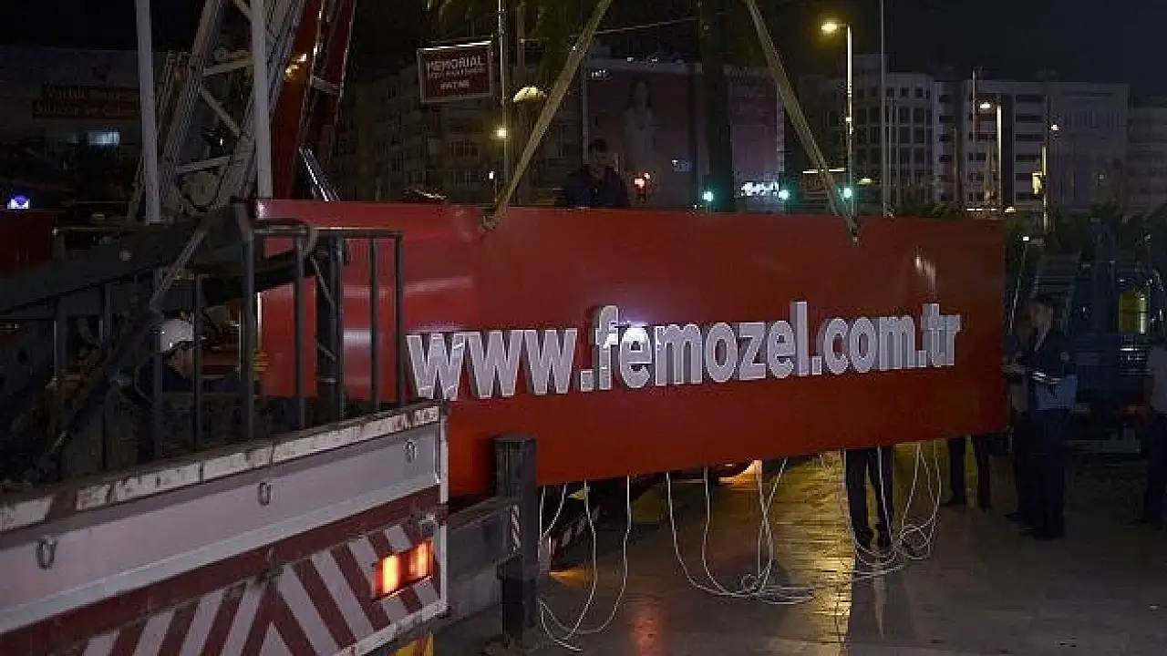 Gece saatlerinde tabelaların bulunduğu binanın önüne gelen İstanbul Büyükşehir Belediyesi zabıta ve itfaiye ekipleri, vinç yardımıyla çalışmalara başladı.