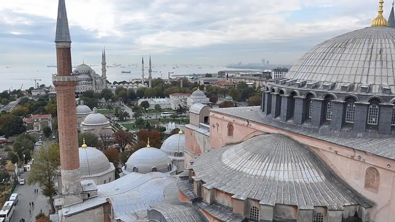 Muharrem ayı ve Kerbela şehitleri için Sultanahmet Camisi ile Ayasofya'nın minarelerinden karşılıklı, hüseyni makamında ezan okunuyor.